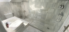 Un ático dúplex tiene 3 dormitorios, 1 de los cuales está en la planta de entrada junto con una ducha en-suite. También hay un aseo de invitados en la misma planta.