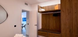 Armarios de estilo abierto: Sumérjase en el diseño elegante y moderno de los armarios de estilo abierto. Una mezcla perfecta de forma y función, estos armarios complementan la estética general del apartamento, añadiendo un toque de sofisticación a su espacio vital.