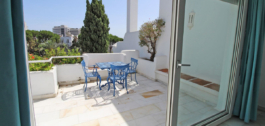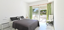 Distribución: Al entrar se encuentra el hall que separa el salón-comedor de la cocina, la cual dispone de lavadero independiente. A continuación hay dos dormitorios dobles muy amplios y dos baños (uno de ellos en-suite). Amplia terraza orientada al sureste, muy soleada por la mañana y por la tarde, con vistas al jardín y a la piscina.