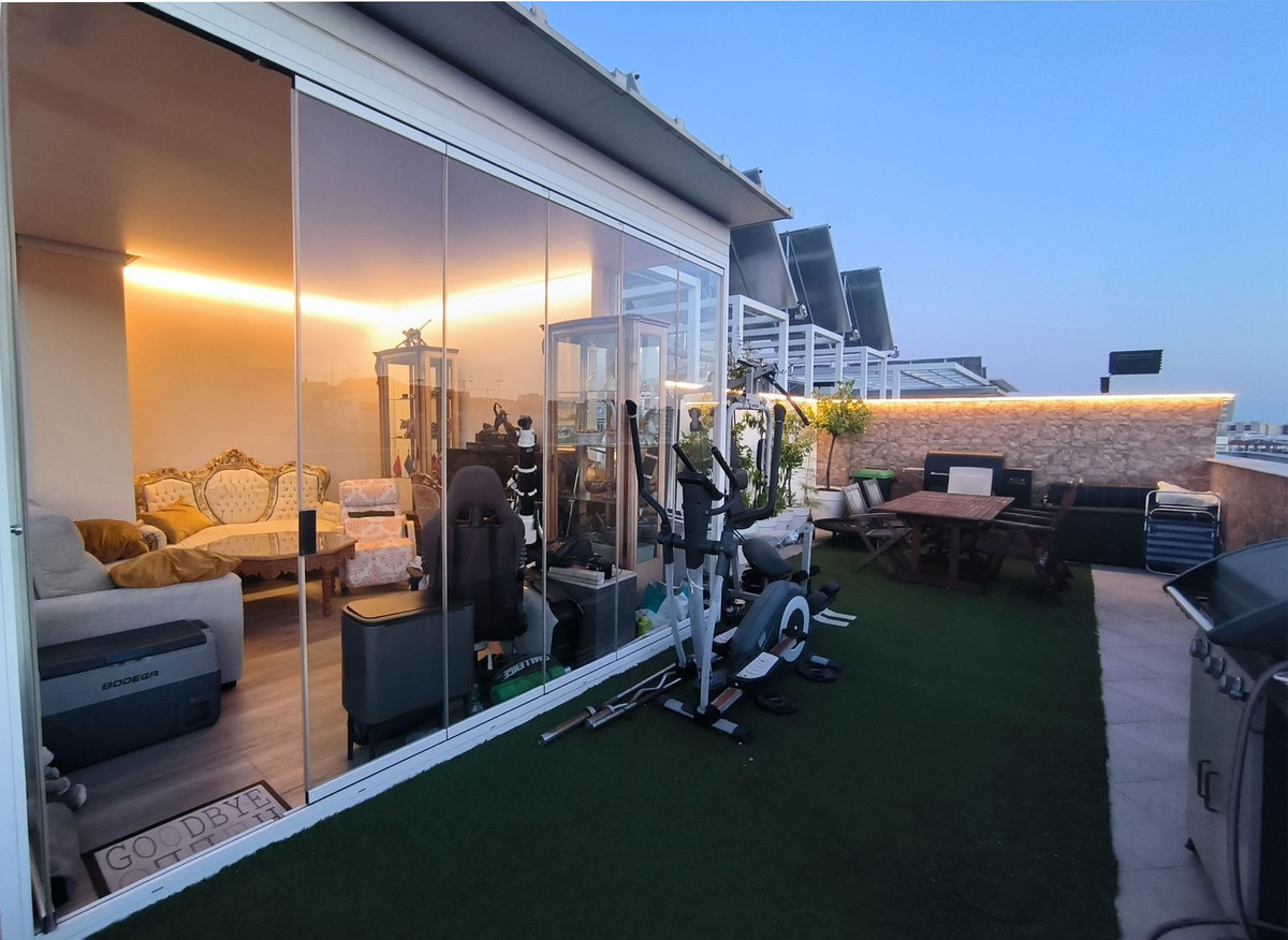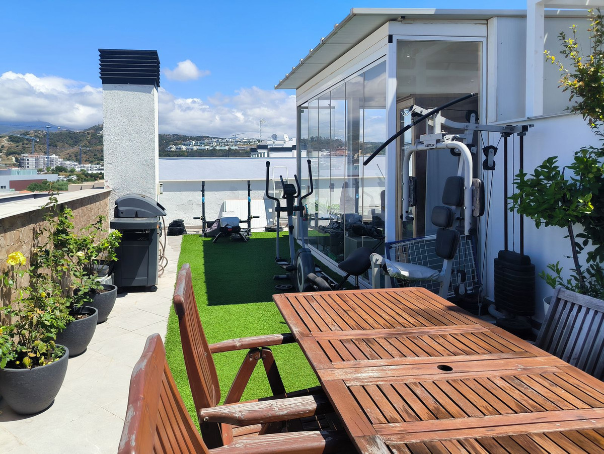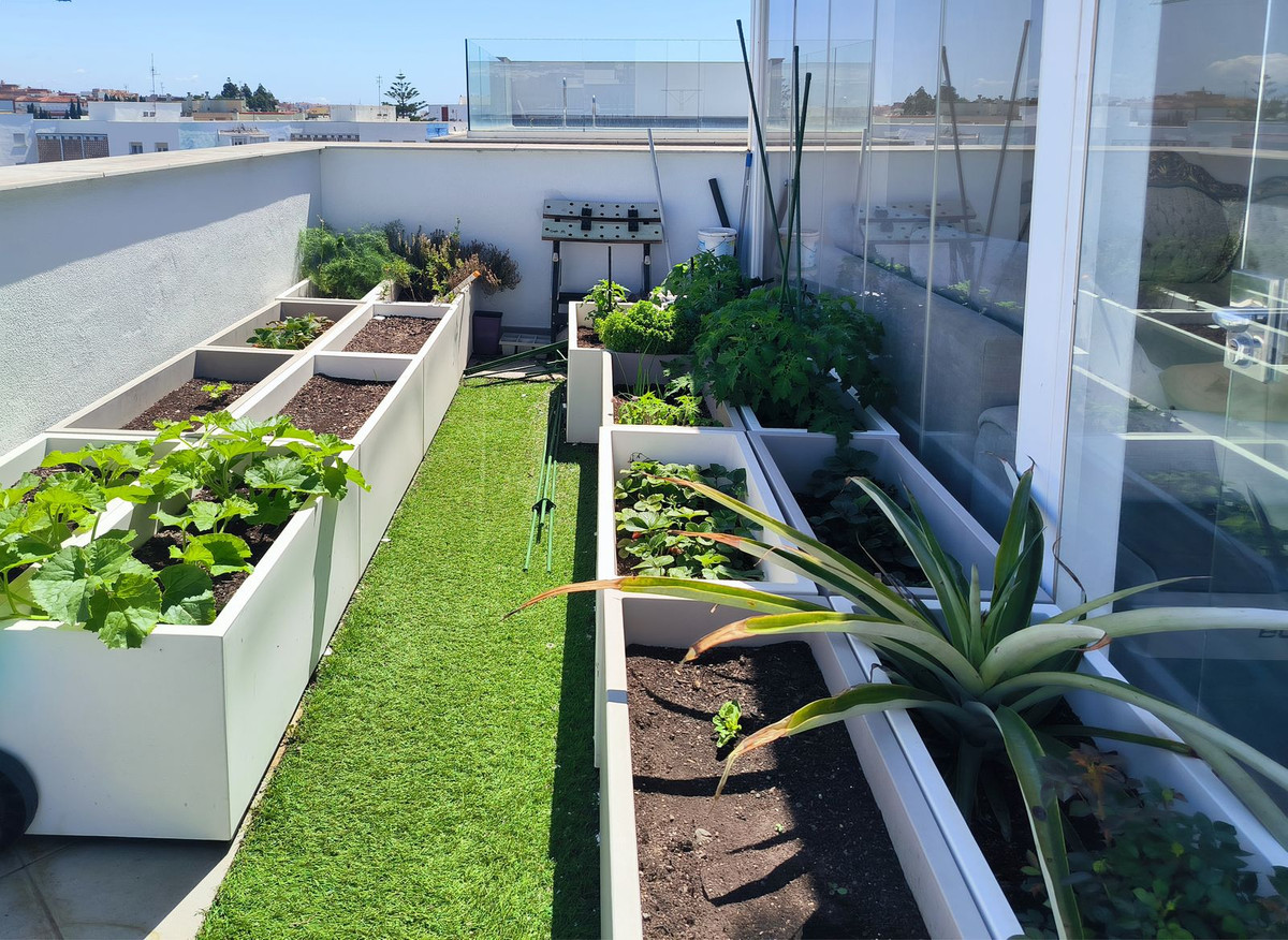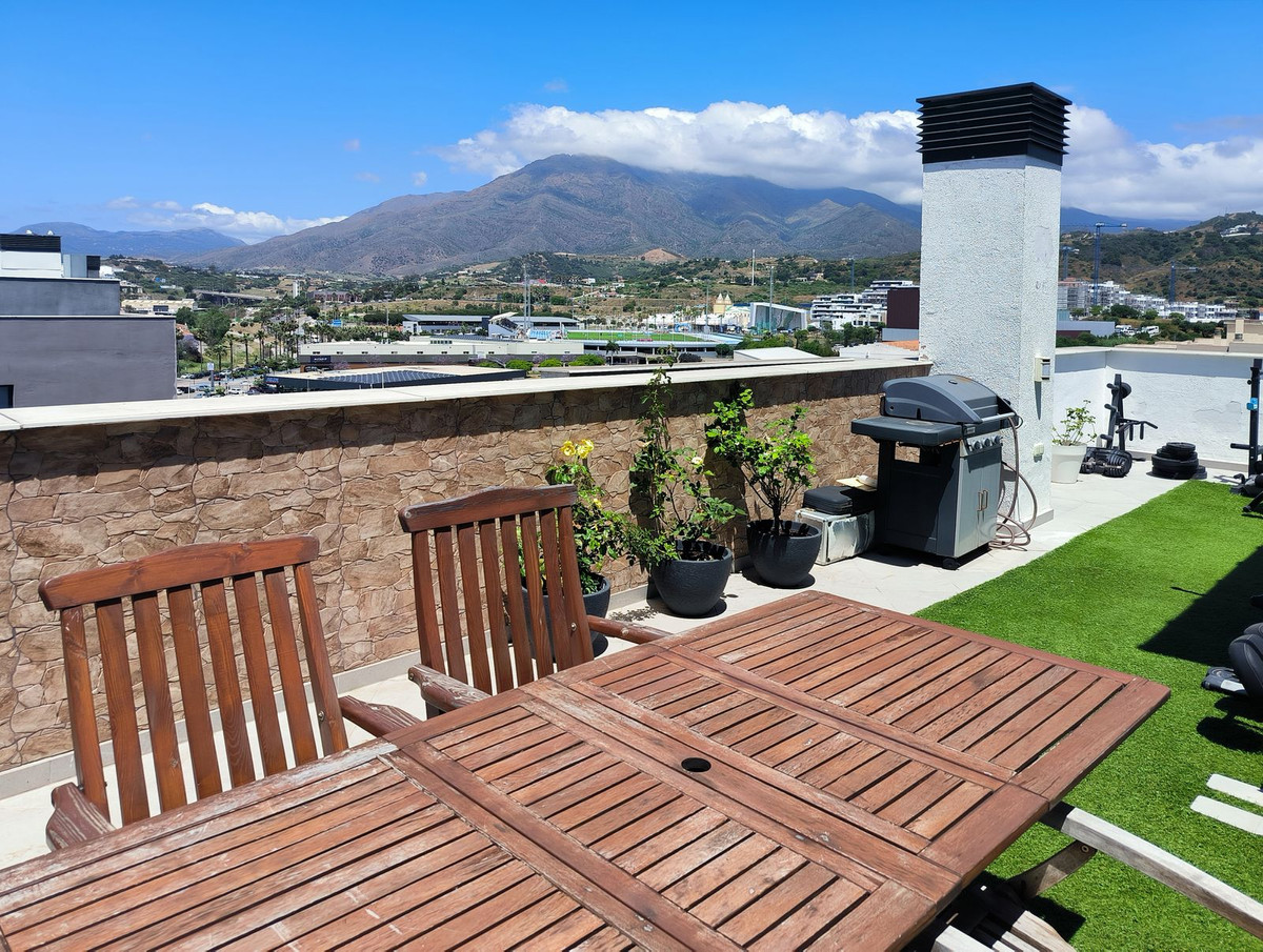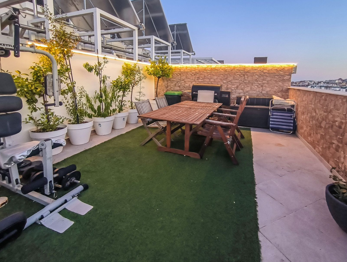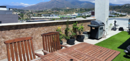 Destaca una impresionante terraza solárium en la azotea de 63 metros cuadrados con vistas panorámicas que abarcan toda la ciudad y se funden con la majestuosa Sierra Bermeja. Este espacio invita a vivir al aire libre: compartir comidas a cielo abierto, relajarse en un rincón de barbacoa o incluso cultivar un pequeño huerto urbano. También cuenta con una zona acristalada que puede utilizarse como rincón de lectura, estudio o sala de relajación.