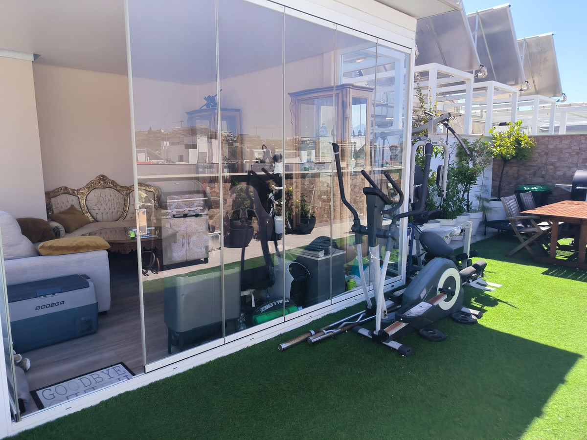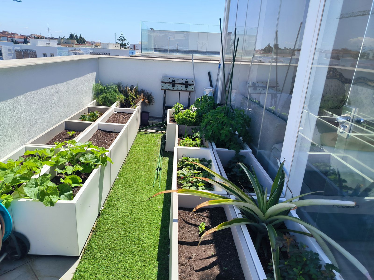 Sin embargo, el verdadero punto culminante de esta casa se encuentra arriba: un impresionante solarium privado de 63 m² en la azotea con vistas panorámicas sobre toda la ciudad y que se extiende hasta las majestuosas montañas de Sierra Bermeja. Este espacio exterior le invita a disfrutar de la vida al aire libre, ya sea compartiendo comidas bajo el cielo abierto, relajándose en la zona de barbacoa o incluso cultivando su propio huerto urbano. También hay una habitación acristalada en la azotea, ideal como rincón de lectura, estudio o espacio de relajación.