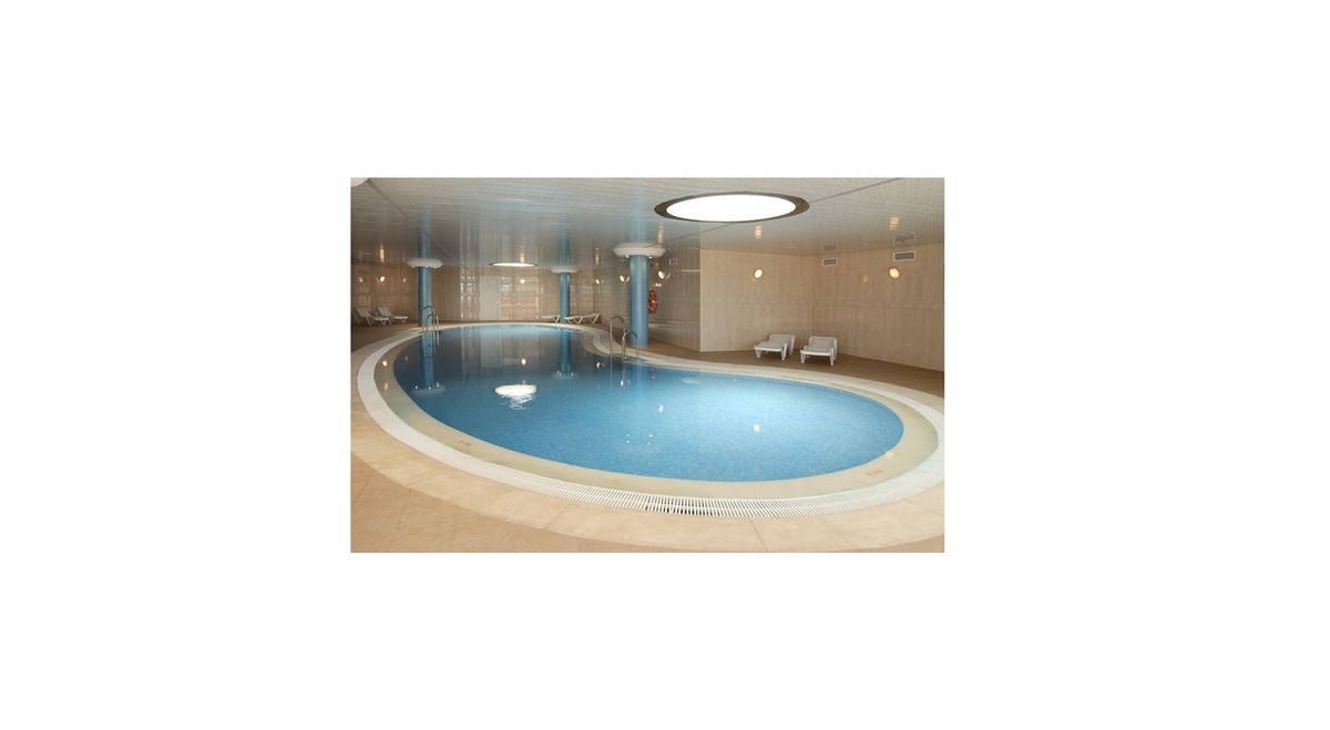 Comunidad con piscina exterior y piscina interior con spa, sauna y gimnasio.