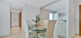 Diseño contemporáneo con cocina conectada visualmente con el comedor a través de una práctica mampara corredera de cristal