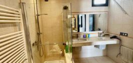 El dormitorio principal está situado en la planta baja y cuenta con un cuarto de baño. En la planta superior, encontrará dos habitaciones adicionales, una utilizada actualmente como despacho y la otra como posible dormitorio de invitados, ambas comparten un cuarto de baño con ducha.