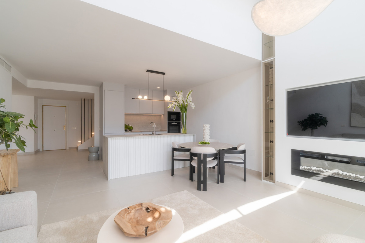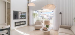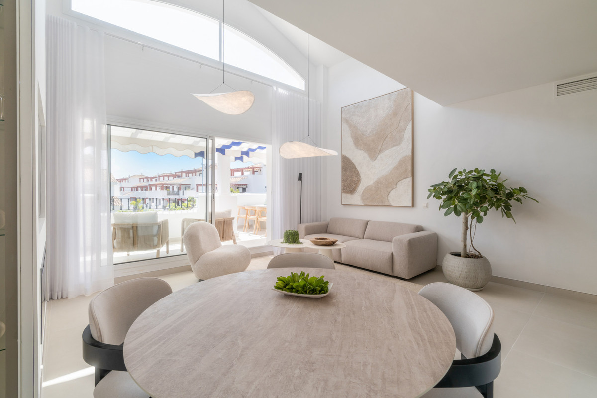 Amueblada con un elegante estilo escandinavo, la vivienda cuenta con una luminosa cocina abierta y un espacioso salón con un encantador techo abovedado. Puertas acristaladas que se abren a una terraza privada con mesa de comedor exterior, perfecta para disfrutar del estilo de vida mediterráneo.