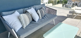 Este hermoso ático de esquina ofrece una cocina abierta y amplio salón con grandes baldosas de cerámica en todo el apartamento. 3 dormitorios – 2 baños . La sala de estar y el dormitorio principal con su baño en suite conducen a la gran terraza .