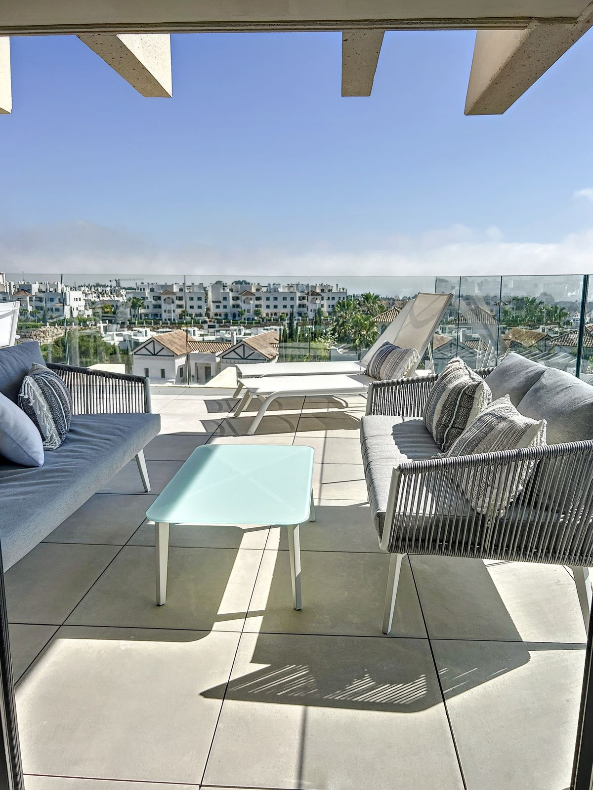 Amplio ático esquinero contemporáneo a estrenar con solarium. 100% orientado al sur, proporcionando mucho sol todo el día con mucha luz en el interior y además de eso fantásticas vistas abiertas al mar, las hermosas montañas y Gibraltar.