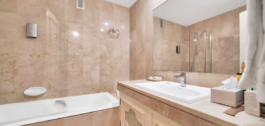 Acceda a la amplia terraza de 22 metros de largo, donde le aguardan impresionantes panorámicas. El ático está totalmente amueblado y cuenta con tres amplios dormitorios, una cocina americana totalmente equipada perfectamente conectada con el comedor y la sala de estar, creando un espacio ideal para el entretenimiento o relajarse con la familia.