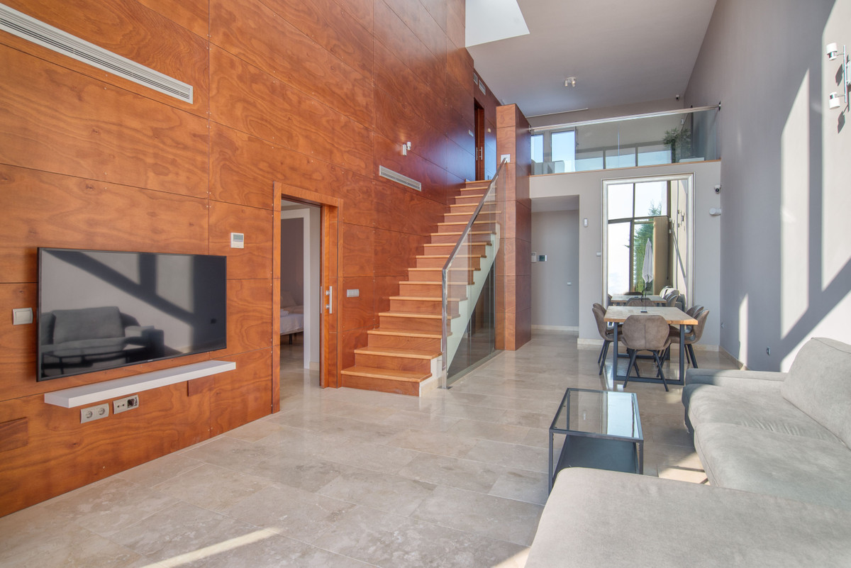 La Villa tiene 3 plantas y cuenta con 2 amplios dormitorios en la planta baja, con baño, cocina, salón y terraza – jardín con impresionantes vistas de toda la costa este y las montañas.