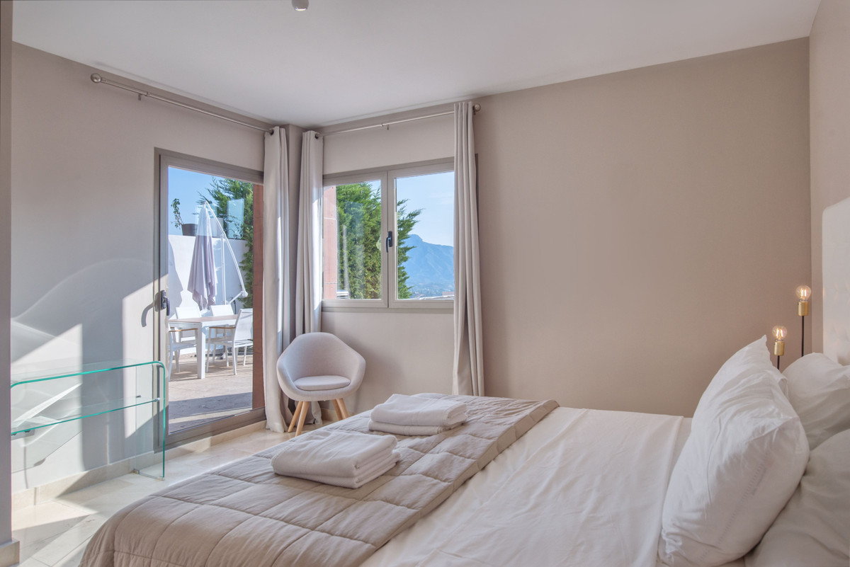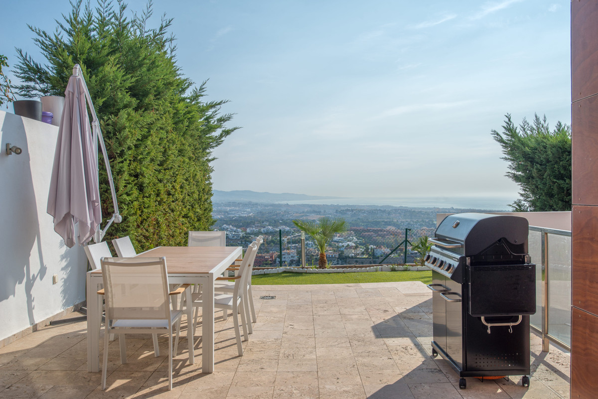 La urbanización tiene piscina y solo hay 8 casas construidas por lo que tiene mucha privacidad. Se encuentra en una zona muy tranquila, con fácil acceso a la carretera de Benahavis, estando a 10 minutos de Puerto Banús, a 7 minutos de la playa y a 5 minutos de los campos de golf que abundan en la zona.