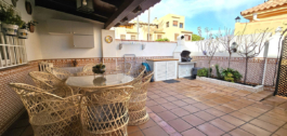 La propiedad se accede a través de un atractivo porche de estilo andaluz con hermosas baldosas y plantas en macetas que se abre en el hall de entrada con grandes armarios. A la izquierda está la cocina totalmente equipada con lavadero independiente y baño de visitas. Bajando unos pocos escalones se llega al gran salón-comedor con un práctico bar para aquellos que les gusta entretener, y esto lleva directamente a la gran terraza con hermosos azulejos andaluces y plantas de colores. Hay suficiente espacio en esta terraza para comer en familia y una zona chill out. Una puerta al final de la terraza le lleva a los jardines comunitarios y piscina con acceso directo a la playa.