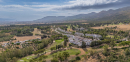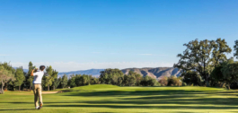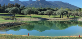 El complejo incluye campo de prácticas, putting greens, pistas de pádel, piscinas, restaurante y bar.