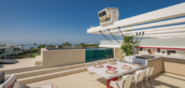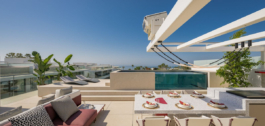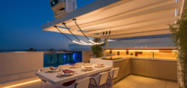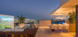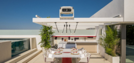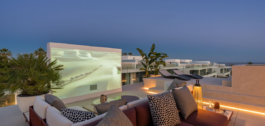La terraza de la azotea es un paraíso para el entretenimiento, con una cocina al aire libre, una piscina privada y un proyector de alta gama que transforma el espacio en un cautivador cine al aire libre por la noche. Cada detalle de esta villa habla de la máxima calidad y lujo posibles, desde las puertas de madera de roble natural hasta un sistema domótico de alta gama.