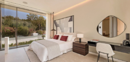 Los cuatro dormitorios de la villa están cuidadosamente diseñados para ofrecer privacidad y tranquilidad. En la primera planta se encuentra la lujosa suite principal, con un gran vestidor, un lujoso baño integrado y una amplia terraza con impresionantes vistas al mar. También en este nivel hay dos dormitorios de invitados adicionales, cada uno con armarios a medida Poliform para un amplio almacenamiento y un toque elegante. El cuarto dormitorio, situado en el sótano, goza de luz natural, lo que lo convierte en un espacio luminoso y acogedor, ideal para invitados o como refugio privado.