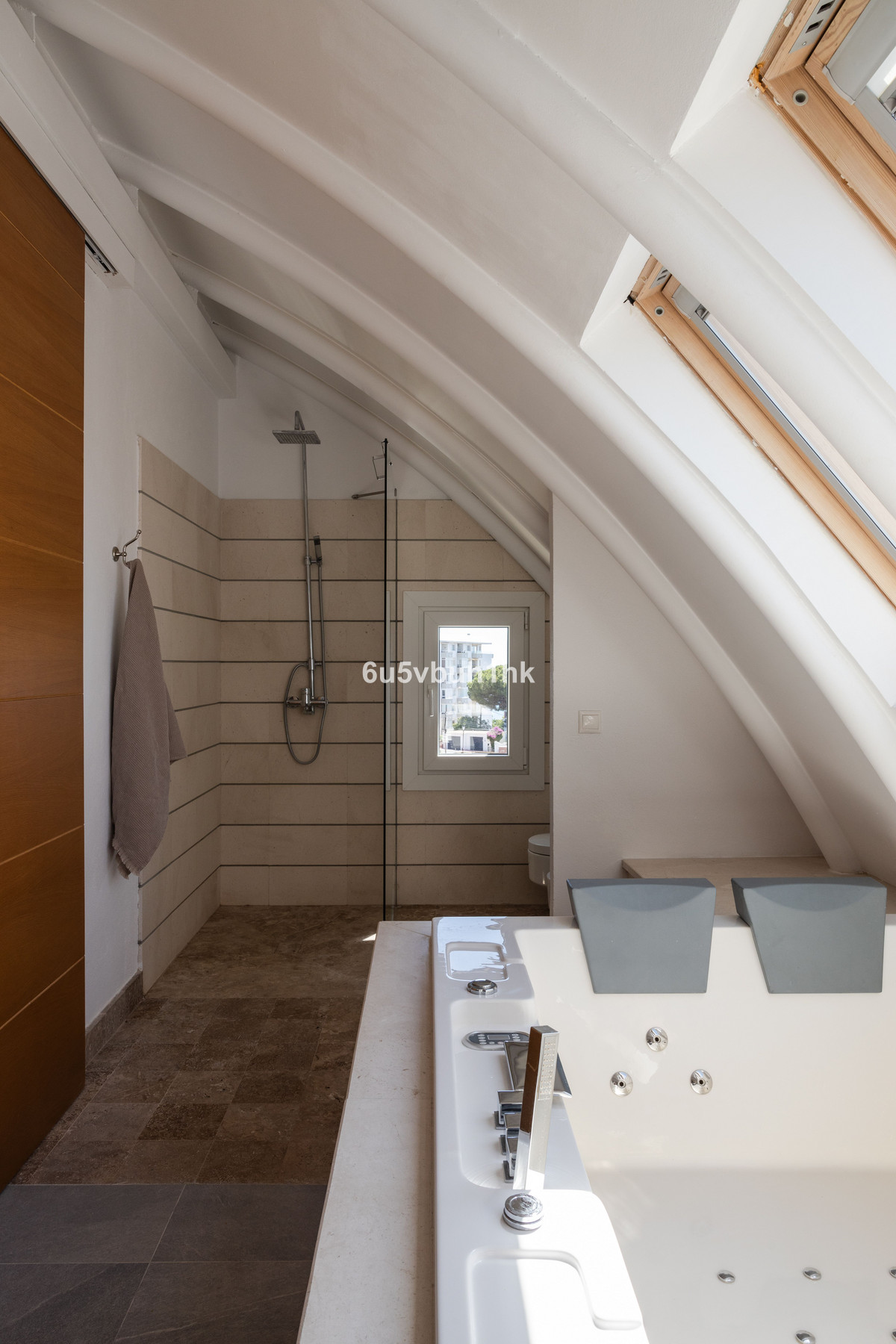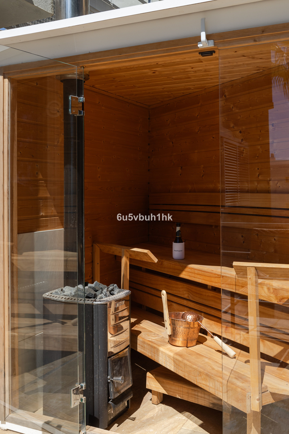 La casa tiene cuatro dormitorios, y su distribución está diseñada para adaptarse a las familias, ya que los dormitorios de arriba están situados cerca unos de otros. En esta casa lista para entrar a vivir, los interiores combinan a la perfección con los exteriores y las terrazas. El patio tiene su propia piscina y una sauna finlandesa, así como acceso directo a la piscina infinita común, que tiene maravillosas vistas panorámicas del mar y la ciudad.