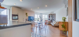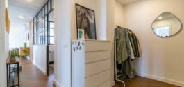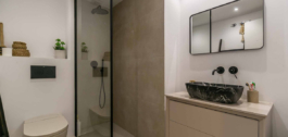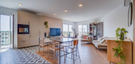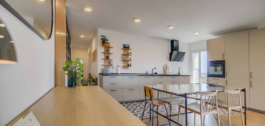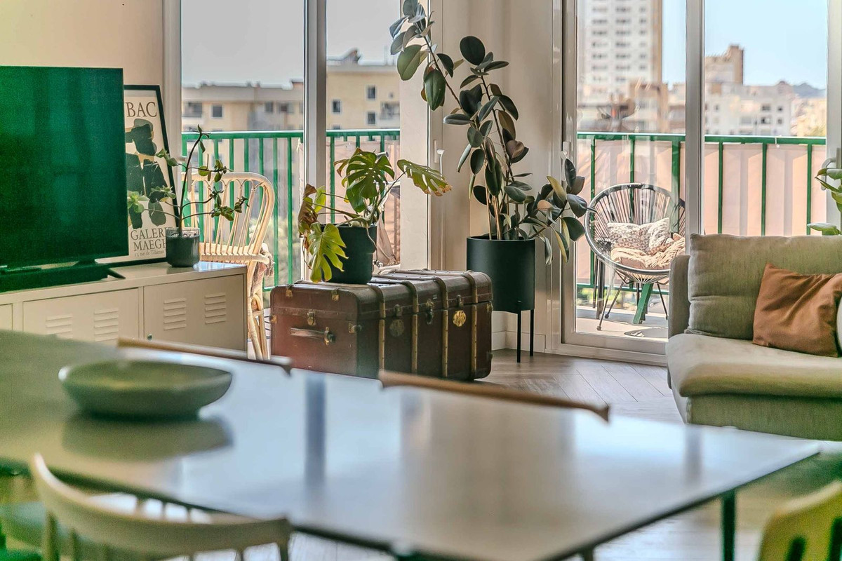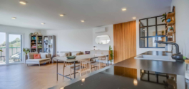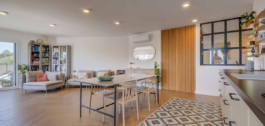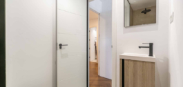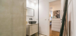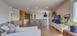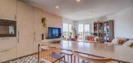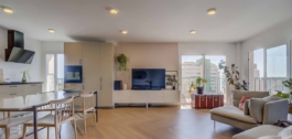 La propiedad ofrece tres dormitorios dobles, dos modernos cuartos de baño y un salón-comedor con cocina integrada que se abre a la luz natural. El tercer dormitorio, acristalado y comunicado con el salón, es ideal como despacho o habitación de invitados, añadiendo versatilidad al espacio. También cuenta con un práctico lavadero oculto tras unas lamas de madera, manteniendo el orden y la estética del piso. Cada detalle del piso ha sido diseñado para ofrecer confort y estilo contemporáneo, con elegantes acabados y una distribución funcional.