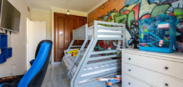 Planta superior: Tres dormitorios dobles con armarios empotrados, incluyendo el dormitorio principal con baño en-suite. Los otros dos dormitorios comparten acceso a una soleada terraza, y también hay un moderno cuarto de baño familiar.