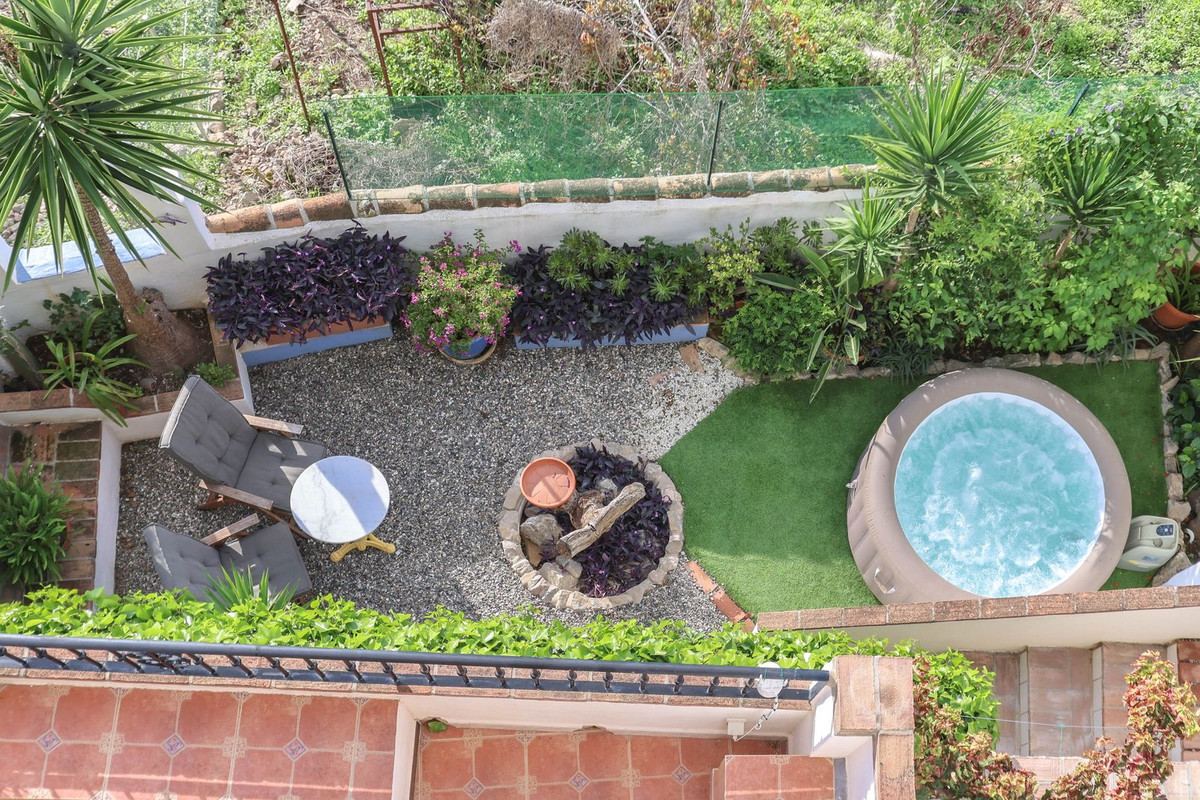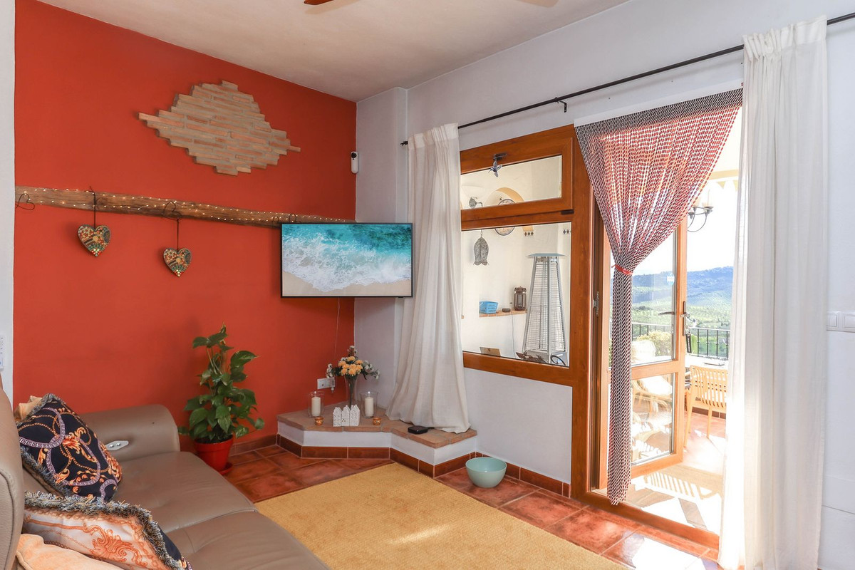 El salón se encuentra en la parte trasera de la propiedad, ¡el lugar perfecto! un gran ventanal enmarca las vistas a la montaña con una puerta que conduce directamente a la terraza cubierta a la sombra. Es bastante raro encontrar una casa de la ciudad con una terraza que conduce desde el salón y una vista. Escaleras conducen al jardín aislado con zona de barbacoa y luego otra vez el 'sol' que es el jardín inferior.