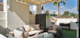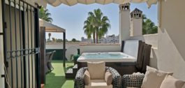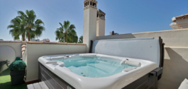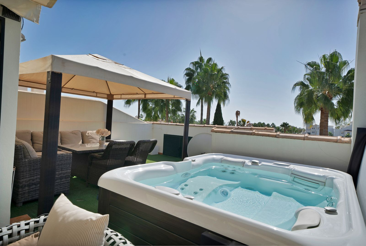 Con más de 300 m² construidos, la propiedad cuenta con 3 dormitorios, 2 baños y un aseo de invitados. El amplio salón-comedor da a una terraza orientada al oeste con vistas a los jardines comunitarios y a la piscina. La luminosa cocina totalmente equipada complementa la espaciosa distribución de la vivienda, mientras que el solárium privado de la azotea, con jacuzzi, es el lugar perfecto para relajarse y disfrutar de las vistas panorámicas.