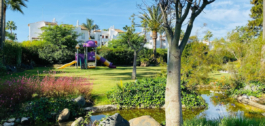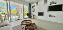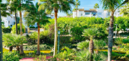 La suite principal destaca por su generoso espacio, vestidor, cuarto de baño en suite con ducha y bañera, y una terraza privada con vistas a los jardines tropicales.