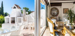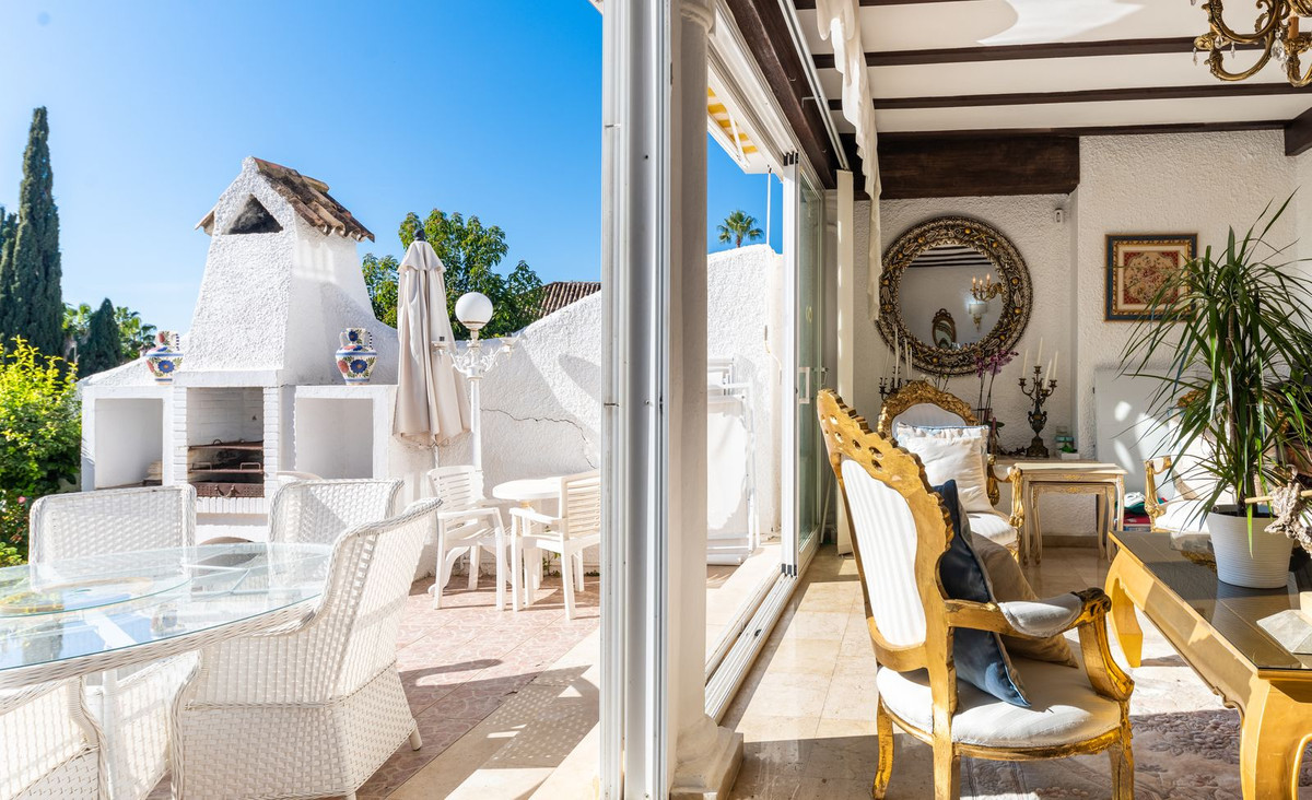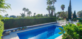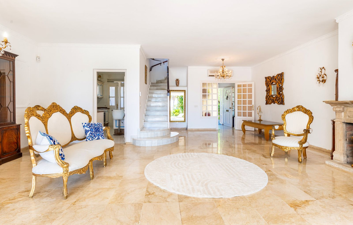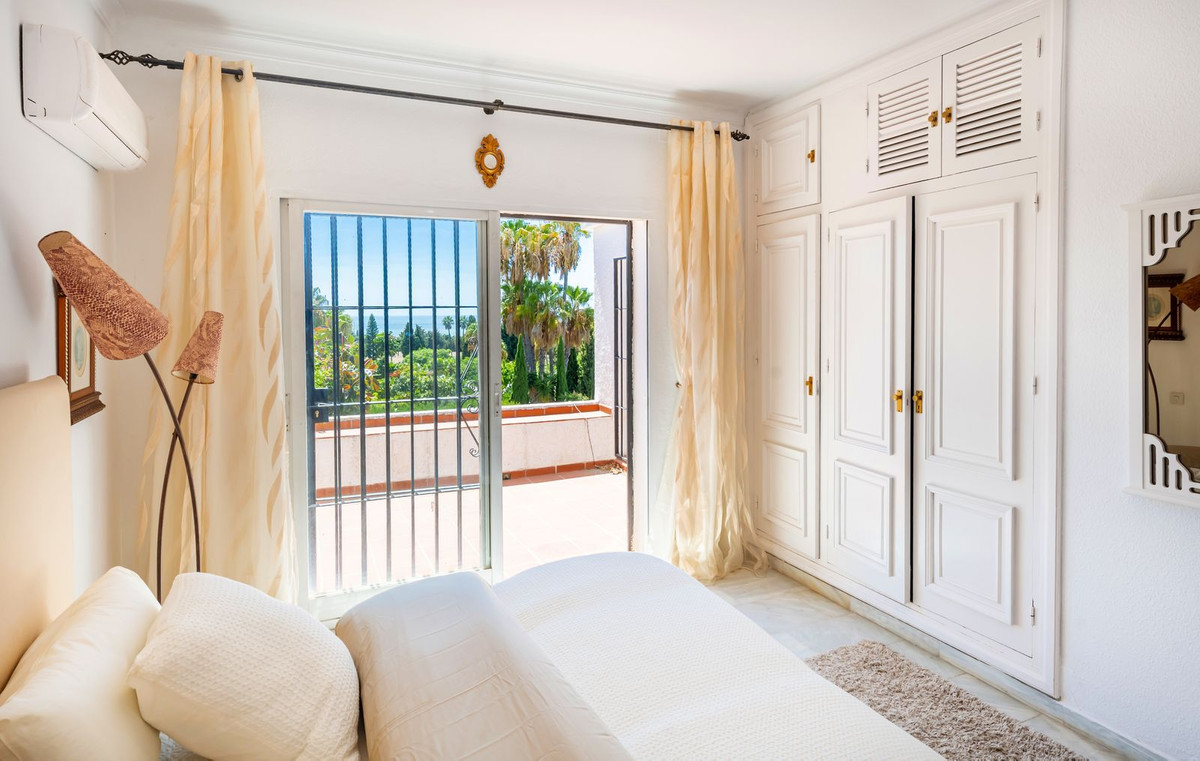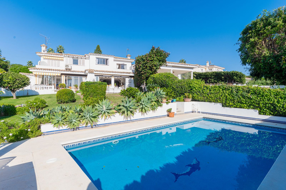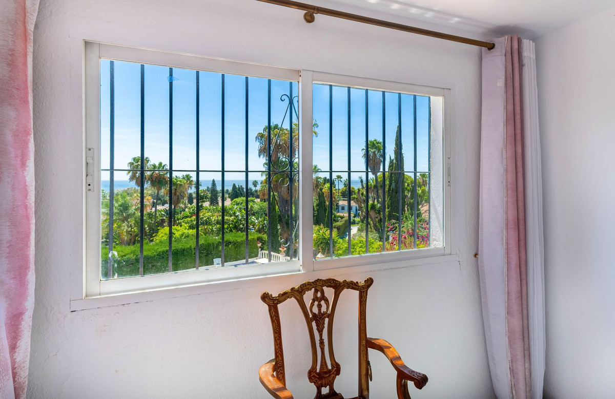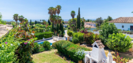 Exquisita Casa Clásica Andaluza con Vistas al Mar distribuida en 2 espaciosos niveles con un precioso jardín privado frente a la Piscina rodeado de vistas a múltiples Palmeras tropicales de gran altura. La distribución interior y exterior de las habitaciones ha sido diseñada por expertos para acentuar el envidiable carácter y ambiente floral andaluz y de múltiples palmeras con vistas panorámicas al mar en toda la casa. Situado en una calle residencial excepcionalmente tranquila y bordeada de palmeras tropicales en El Paraíso Medio, junto al famoso campo de golf de 18 hoyos de El Paraíso y a menos de 1 km del mar y de las exquisitas playas de Costalita.