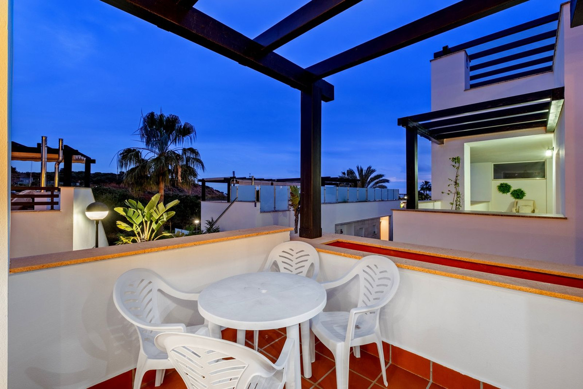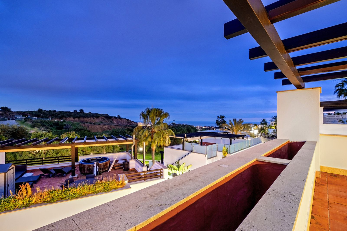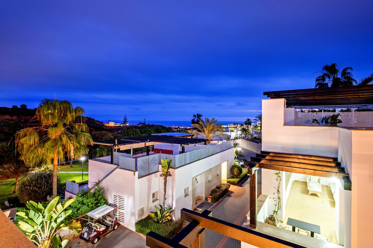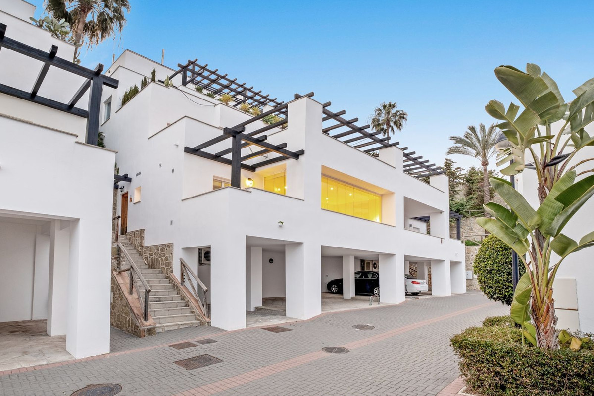 Este elegante dúplex en Santa Clara Golf, Marbella, se distribuye en dos plantas, ofreciendo amplias y