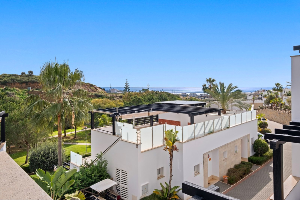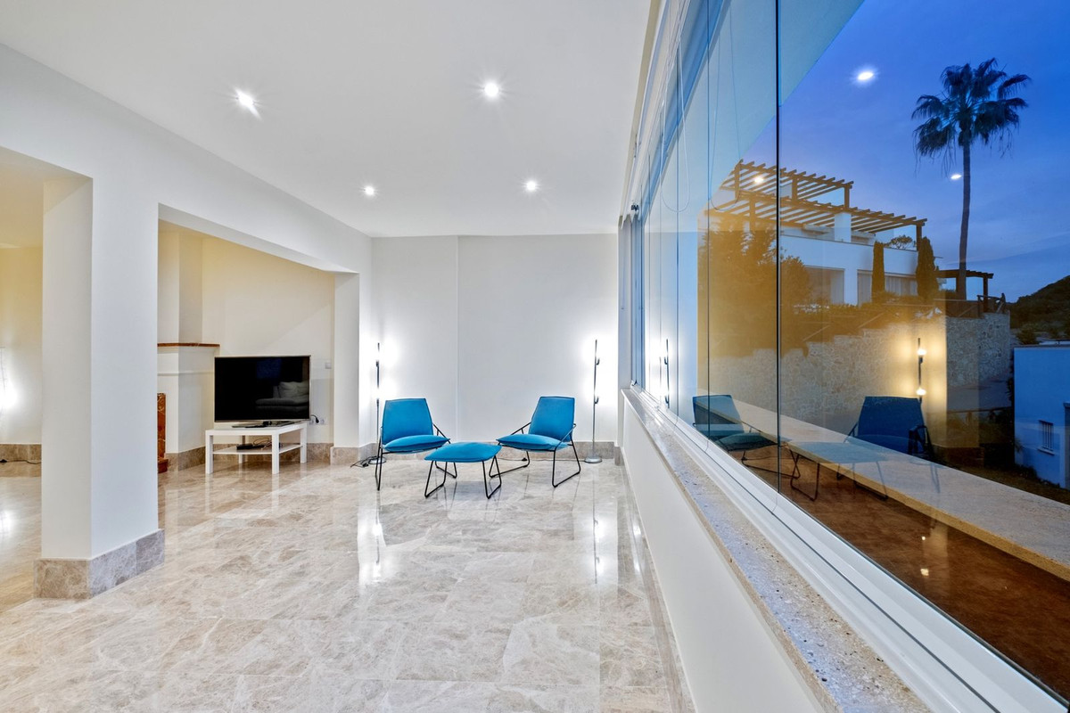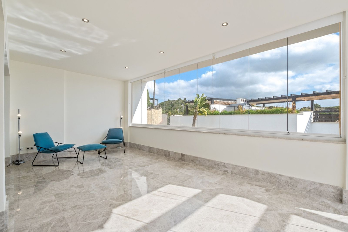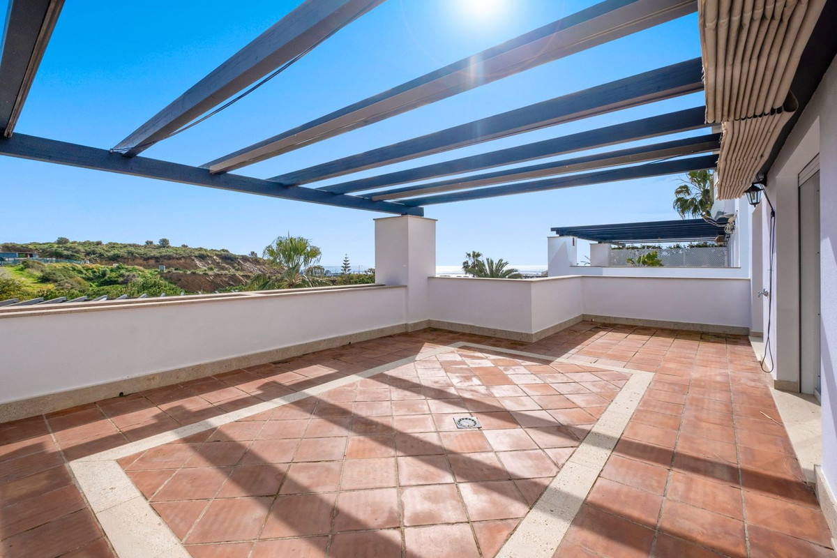 Este elegante dúplex en Santa Clara Golf, Marbella, se distribuye en dos plantas, ofreciendo amplias y
