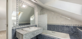 En la primera planta, hay tres dormitorios y dos baños, uno de ellos en suite.