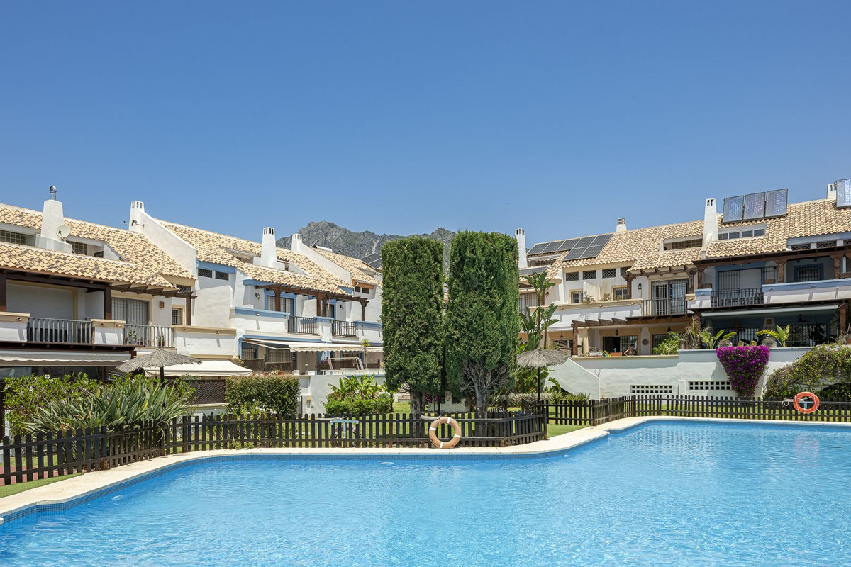Amplia casa adosada con terraza, jardín, piscina y garaje doble en una de las mejores zonas residenciales de Marbella