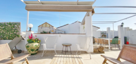 En la planta superior, un impresionante salón-comedor con balcones a la calle y otro pequeño balcón al patio interior de la casa. Una moderna cocina con isla central. Y dos dormitorios dobles, ambos con baño en suite.