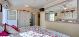 Al entrar, le da la bienvenida un elegante hall de entrada, en la planta baja donde hay tres dormitorios, con armario empotrado y dos baños uno de los dormitorios, es el dormitorio principal ensuite y tiene acceso propio a la terraza y piscina.