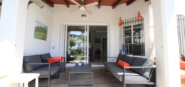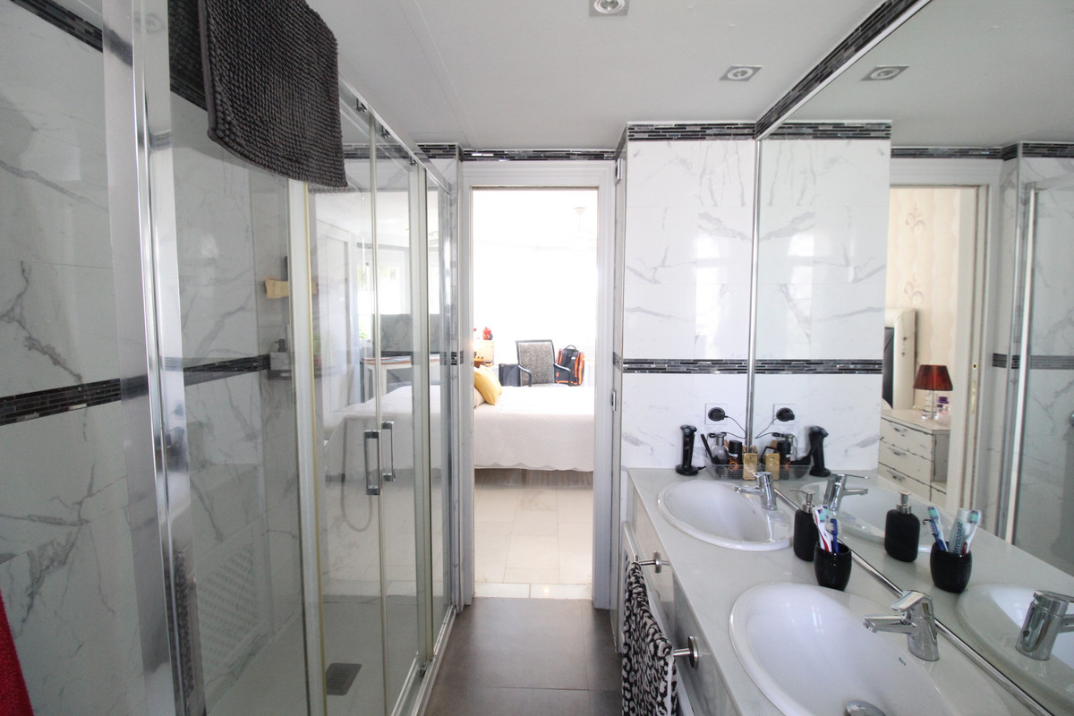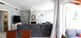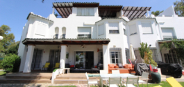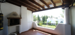 Precioso adosado en urbanización en primera línea de golf; consta de varias piscinas y amplias zonas ajardinadas. Es una comunidad cerrada y muy cuidada. Porches reformados, Solarium , Armarios empotrados, Baños. El techo de madera es de alta calidad Tiene en la planta baja hall de entrada, amplia cocina reformada y baño completo de invitados, salón comedor con chimenea y salida a la terraza con porche y vistas a la piscina de esta fase. Tambien tiene gran porche al noreste en la entrada a la vivienda ideal para los dias de sol y estar al frequito. Disfruta del jardín comunitario desde el porche del salón En la primera planta los 3 dormitorios y 2 baños, uno de ellos ensuite con ducha. Armarios empotrados nuevos en todos los dormitorios. En la segunda planta gran solarium con porche de madera nuevo. Ideal para zona chill out y cenas al aire libre con barbacoa y parte cerrada así como lavadero. Las fantásticas vistas panorámicas a toda la zona de la arboleda y a la sierra de La Quinta. La urbanización esta cerca de todo: Supermercados, Colegios, Tiendas, Restaurantes etc. es ideal para Vacaciones o para familias. Y perfecto para vivir todo el año. Dispone de aire acondicionado general en toda la casa y persianas. San Pedro de Alcantara esta a 4 minutos en coche de Puerto Banus. Es para todos una casa ideal