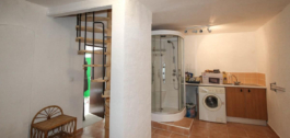 Aparte de un montón de aparcamiento en la calle, la propiedad tiene un garaje privado, y zona de entrada que sólo se puede acceder por los propietarios. El garaje pintado de verde andaluz conduce a un espacio extra que podría ser utilizado como un cuarto dormitorio y un tercer cuarto de baño. Aquí hay acceso a la casa principal a través de una escalera de caracol.
